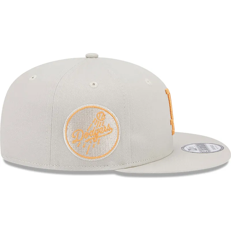 Beige flache Snapback-Kappe mit orangefarbenem Logo 9FIFTY Side Patch der Los Angeles Dodgers MLB von New Era