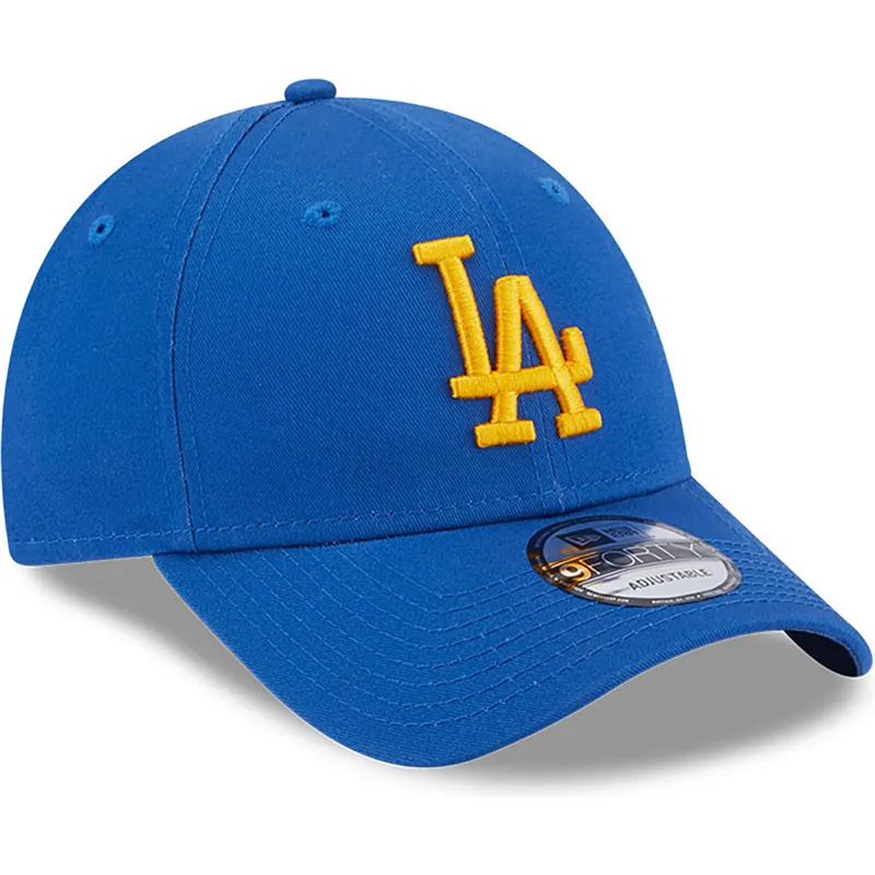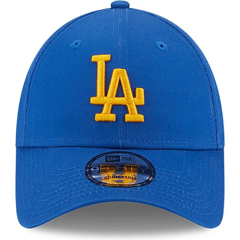 9FORTY League Essential MLB Los Angeles Dodgers verstellbare blaue Kappe mit gebogenem Schirm und gelbem Logo von New Era
