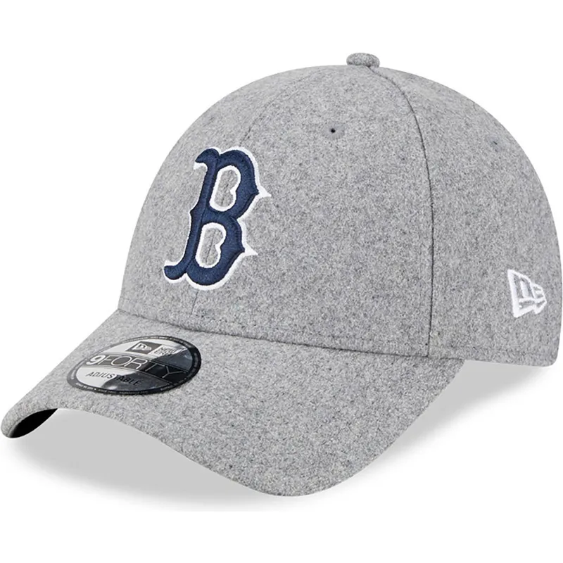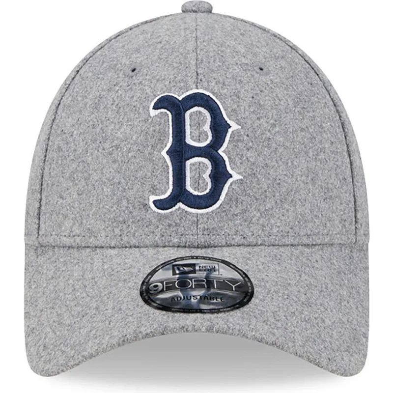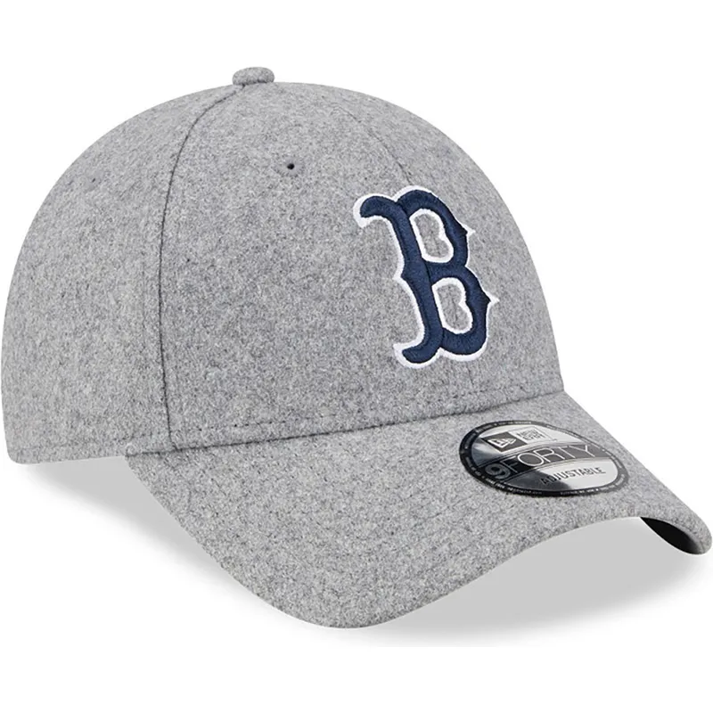 Boston Red Sox MLB New Era 9FORTY Essential Melton Wool verstellbare graue Kappe mit gebogenem Schirm und blauem Logo