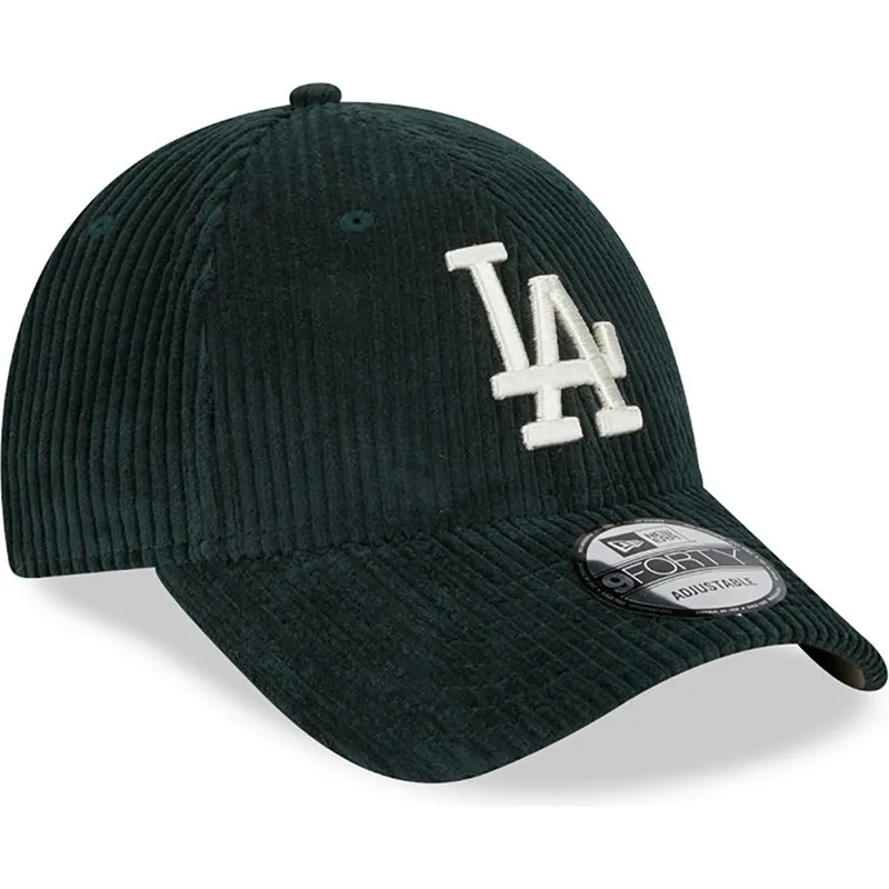 Verstellbare grüne gebogene Kappe mit beigem Logo 9FORTY Wide Cord der Los Angeles Dodgers MLB von New Era
