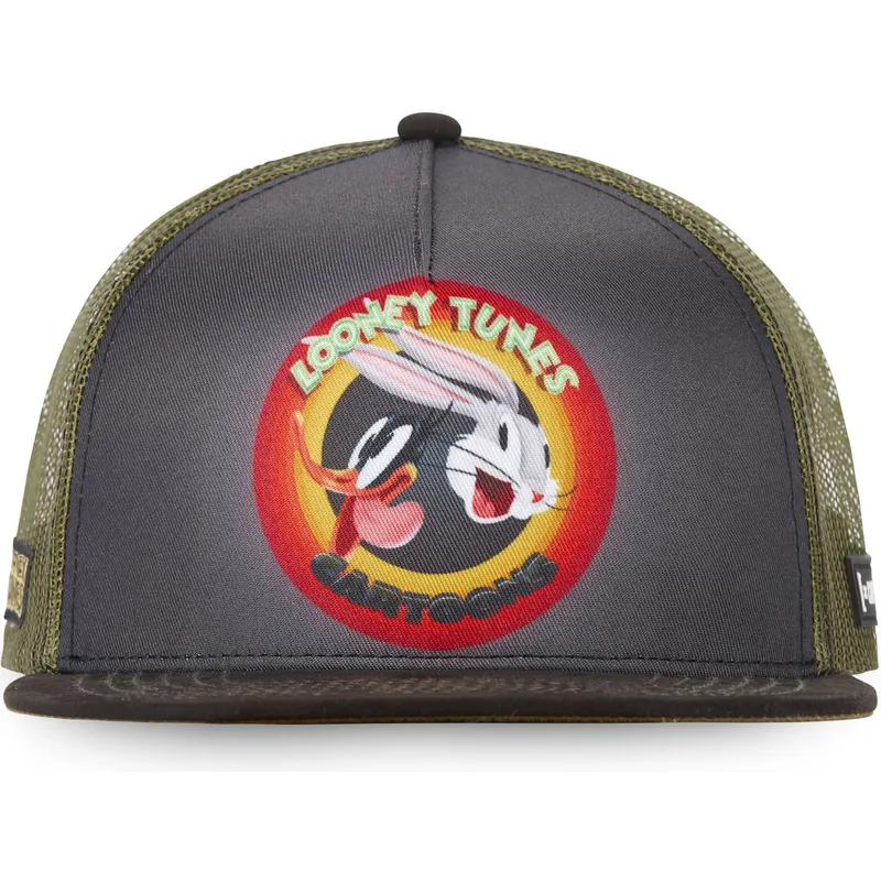Grau-grüne Flat Brim Trucker Cap Bugs Bunny und Daffy Duck LOO8 RIN Looney Tunes von Capslab