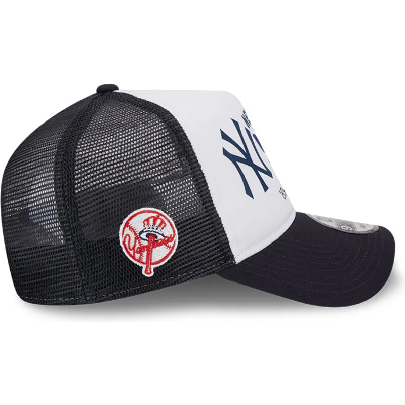 Weiße und marineblaue 9FORTY A Frame Team Trucker-Kappe der New York Yankees MLB von New Era