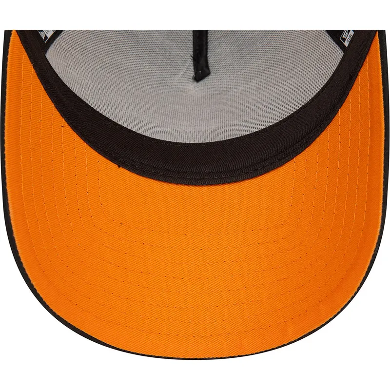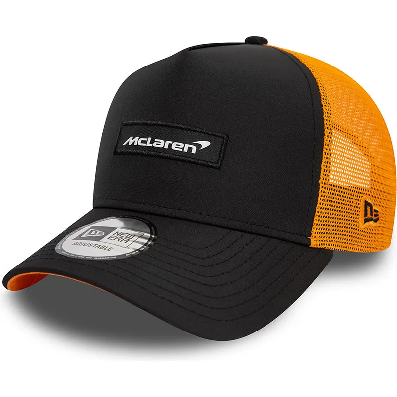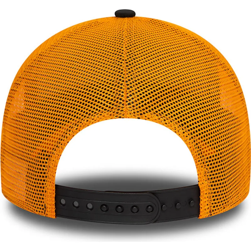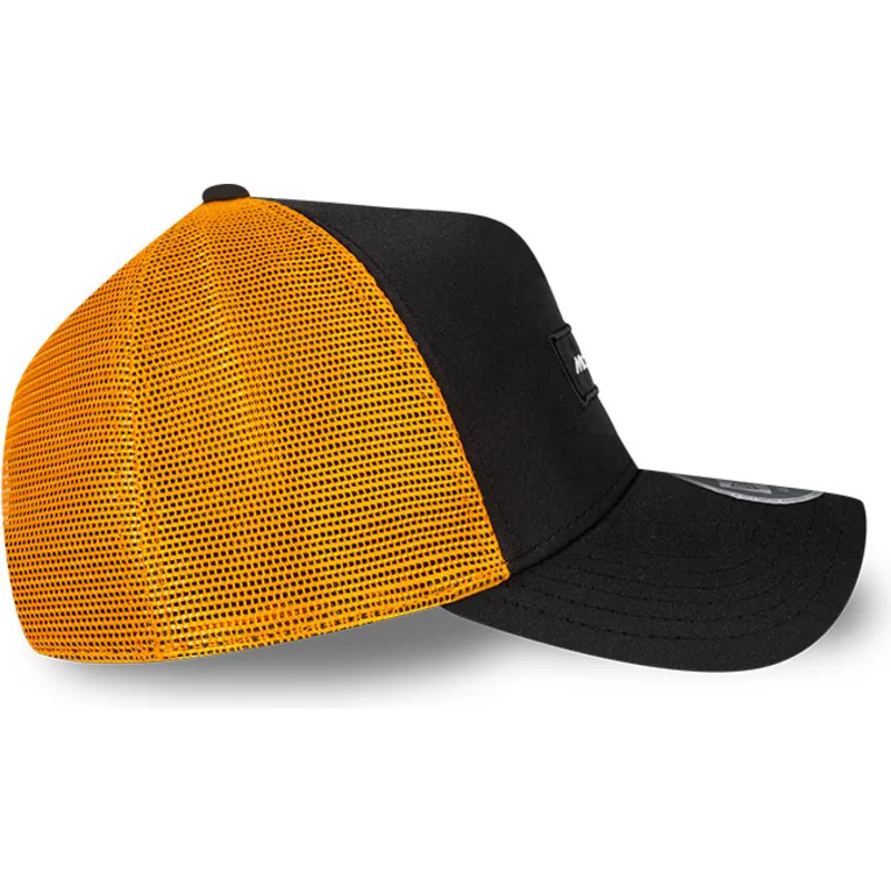 Schwarze und orangefarbene 9FORTY A Frame Patch Front Trucker-Kappe von McLaren Racing Formula 1 von New Era