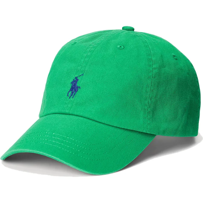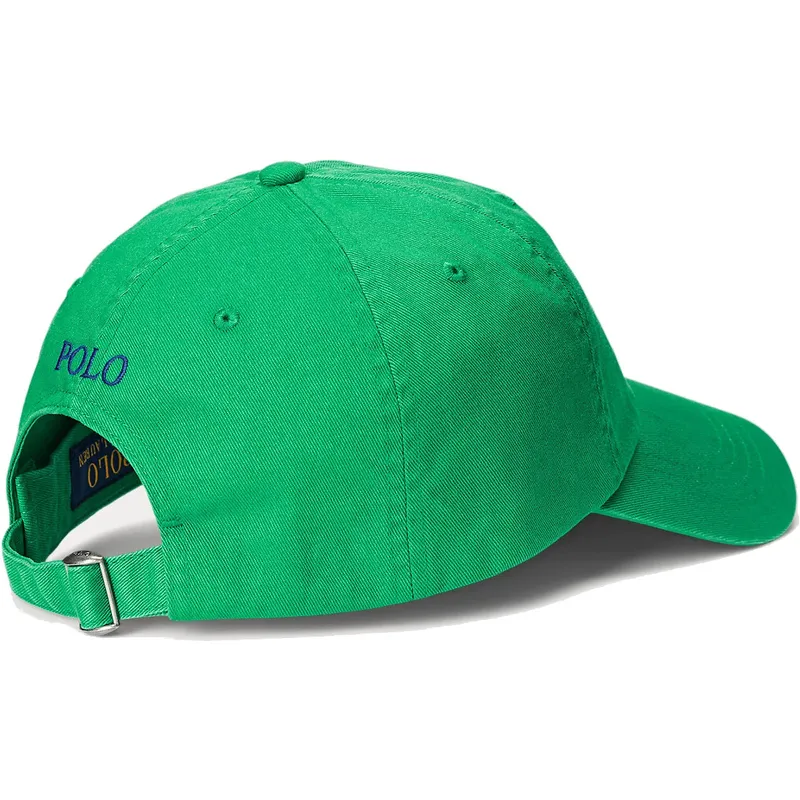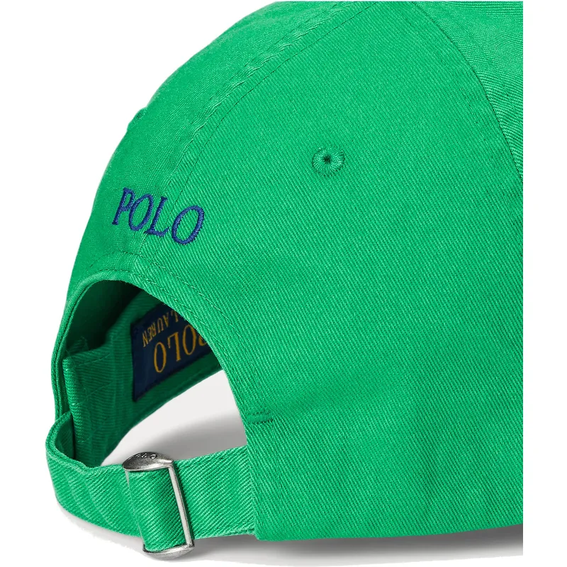 Verstellbare grüne Kappe mit gebogenem Schirm und blauem Logo aus Baumwoll-Chino Classic Sport von Polo Ralph Lauren.