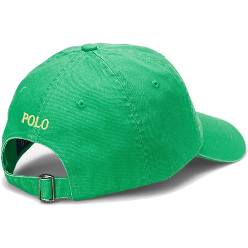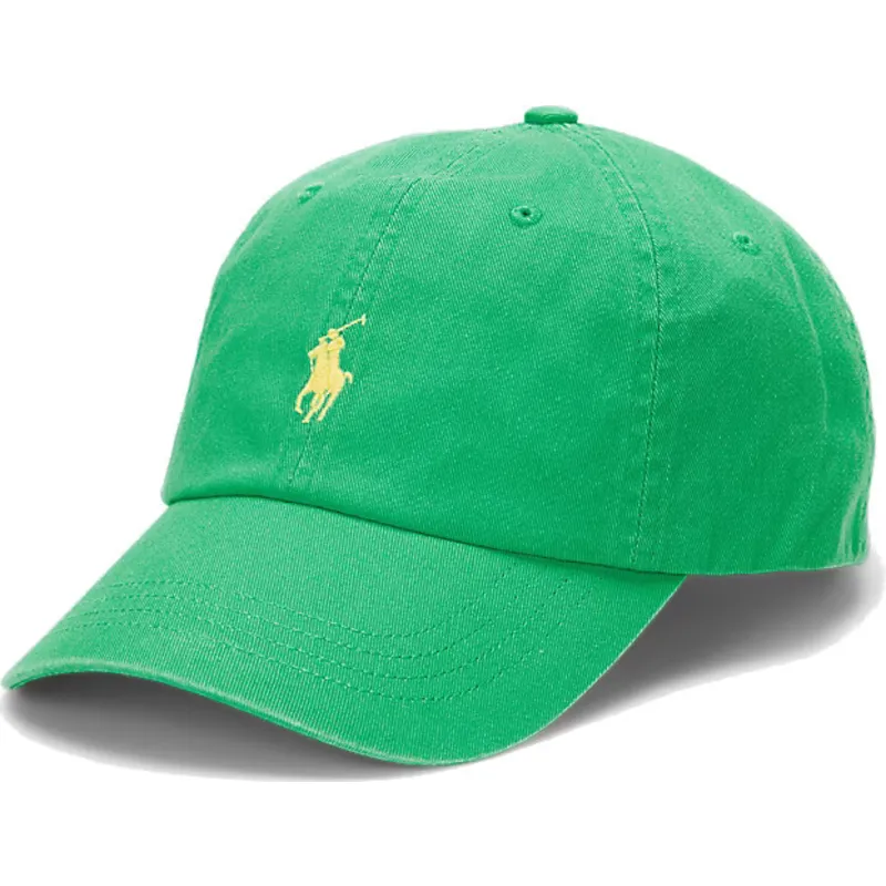 Verstellbare grüne Kappe mit gebogenem Schirm und gelbem Logo aus Baumwoll-Chino Classic Sport von Polo Ralph Lauren