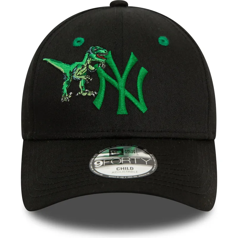 Verstellbare schwarze Curved Cap mit grünem Logo für Jungen 9FORTY Graphic Dinosaurier der New York Yankees MLB von New Era