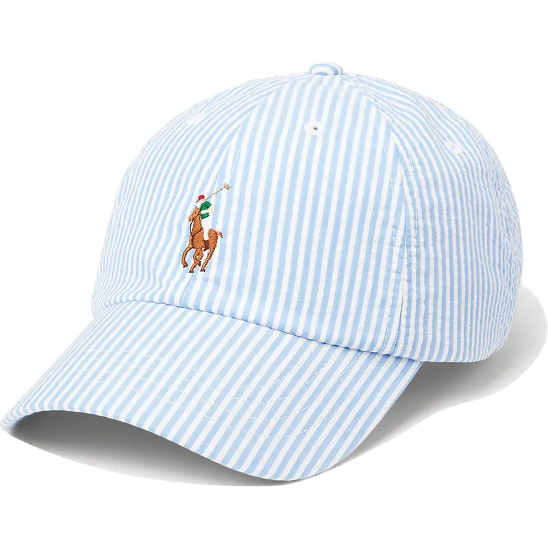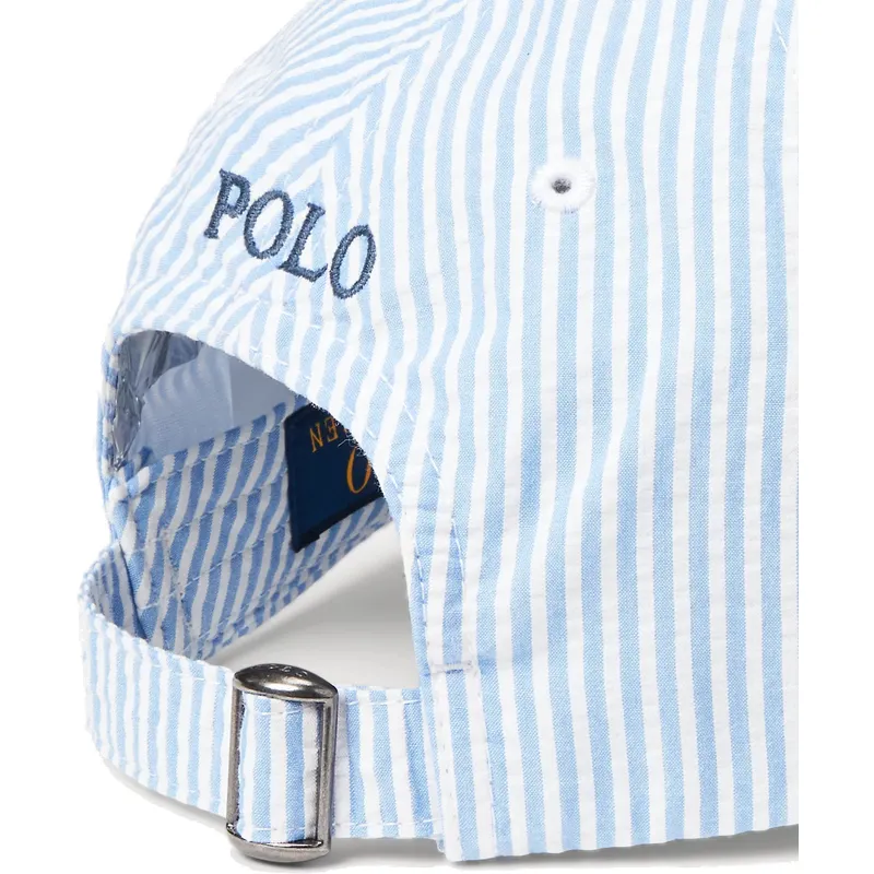 Verstellbare blau-weiße gebogene Kappe aus Baumwoll-Seersucker von Polo Ralph Lauren