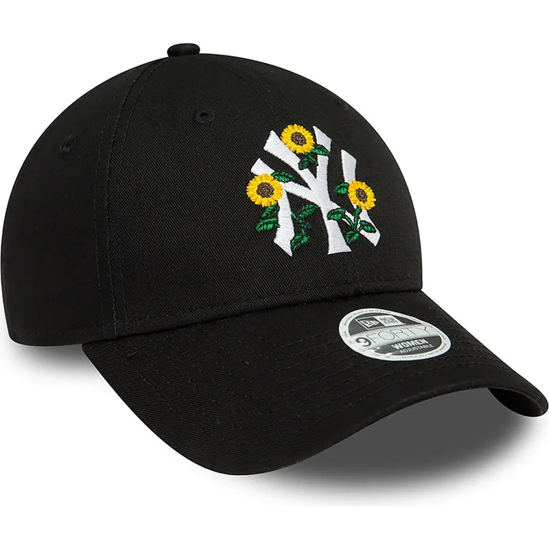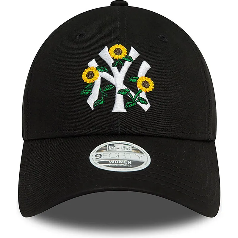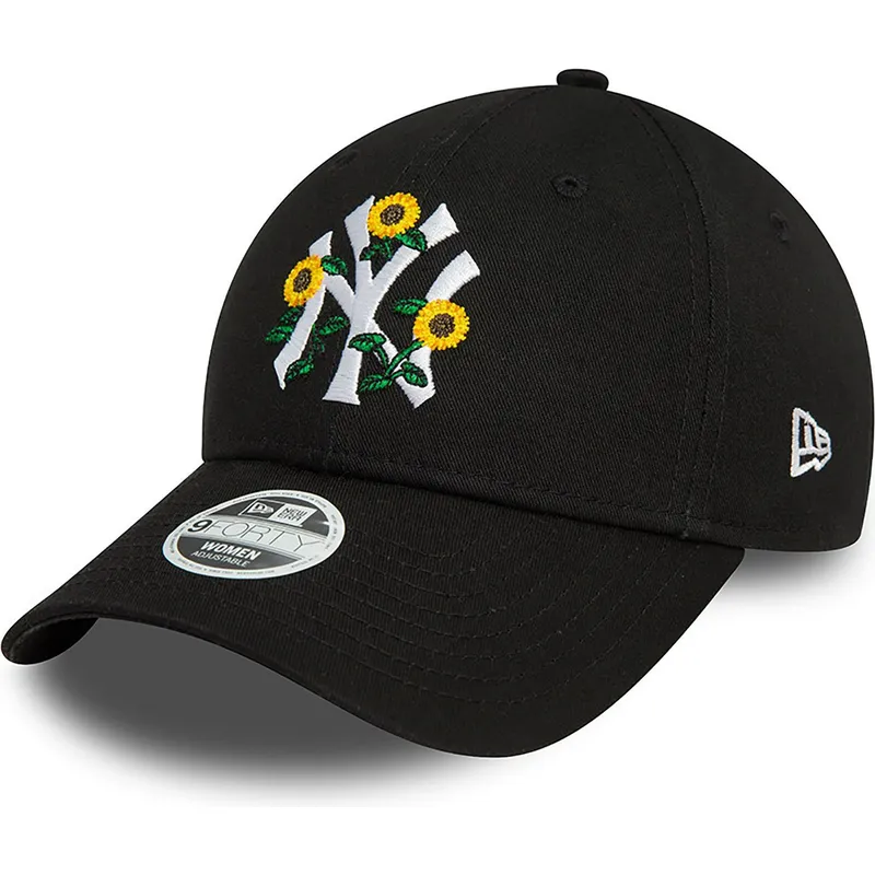 New Era 9FORTY New York Yankees MLB Damen Verstellbare Schwarze Kappe mit Gebogenem Schirm und Blumenmuster