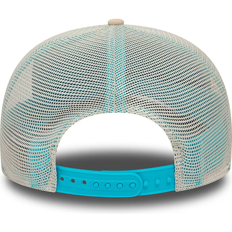 Die beige-blaue American Keep Truckin 9FIFTY Retro Crown A Frame Trucker Cap von New Era ist ein vielseitiges Accessoire, das sich perfekt mit jedem Outfit kombinieren lässt. Ob für einen entspannten Tag am Strand oder einen Einkaufsnachmittag in der Stadt, diese Kappe ist das ideale Accessoire, um Ihrem Look einen Hauch von Stil zu verleihen. Dank des Snapback-Verschlusses können Sie ihn einfach verstellen und so an die Größe anpassen, die am besten zu Ihnen passt.