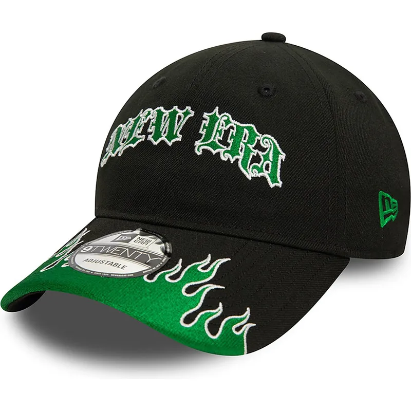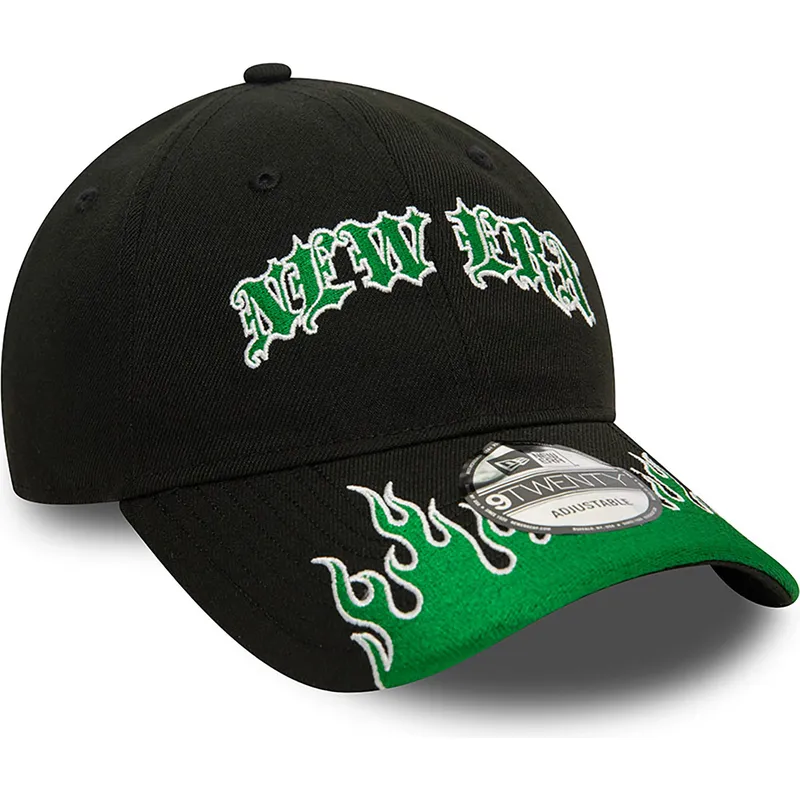 9TWENTY Race Flame verstellbare schwarze und grüne Kappe mit gebogenem Schirm von New Era