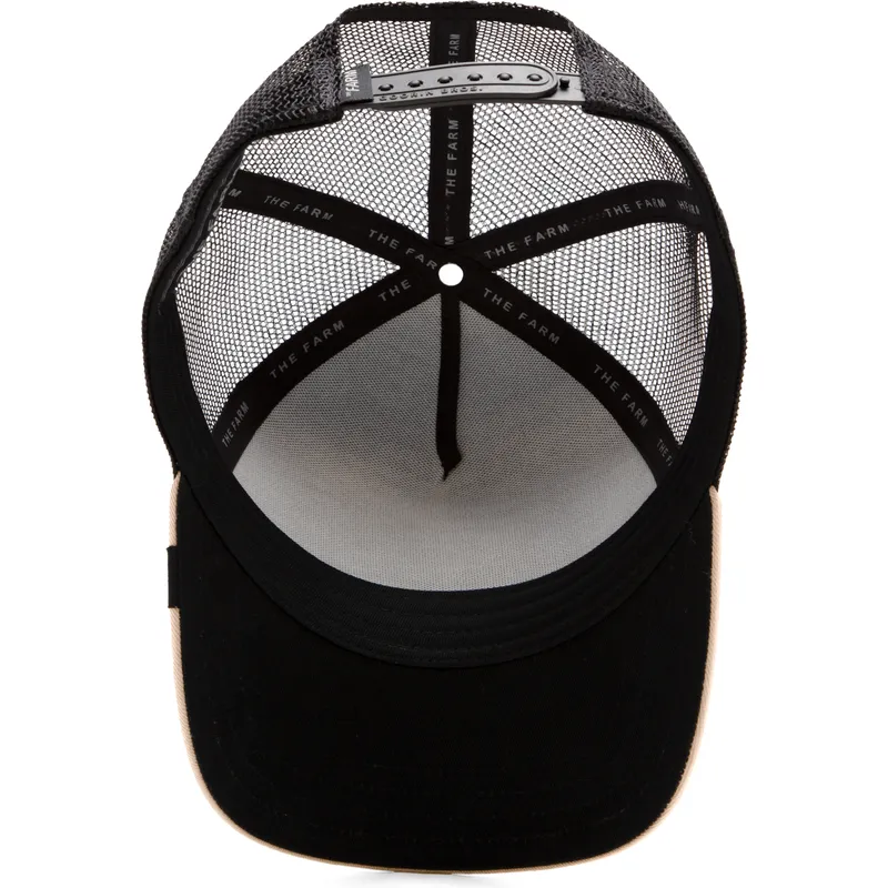Schwarze und beige Trucker-Kappe Rottweiler-Hund The Guard Dog The Farm von Goorin Bros.