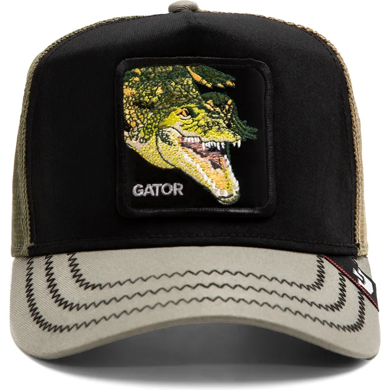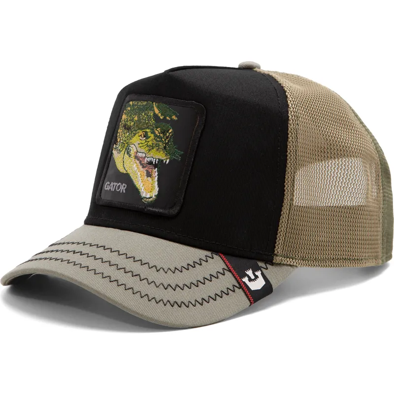 Schwarze und grüne Krokodil-Trucker-Cap Gator Tri Tone The Farm von Goorin Bros.