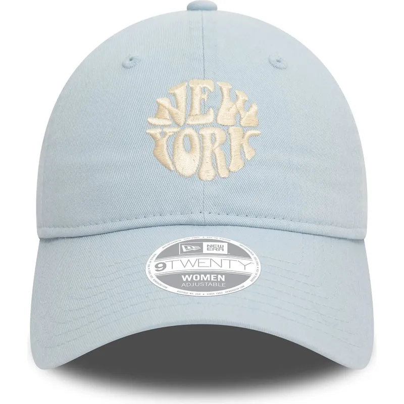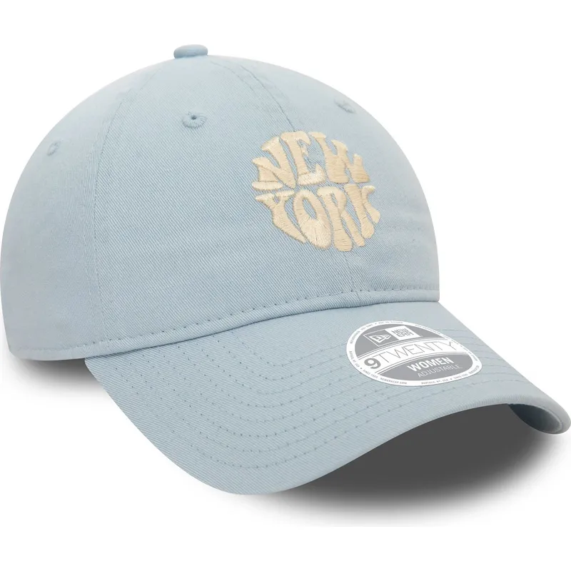 9TWENTY Washed verstellbare hellblaue Damen-Kappe mit gebogenem Schirm von New York States and Countries von New Era
