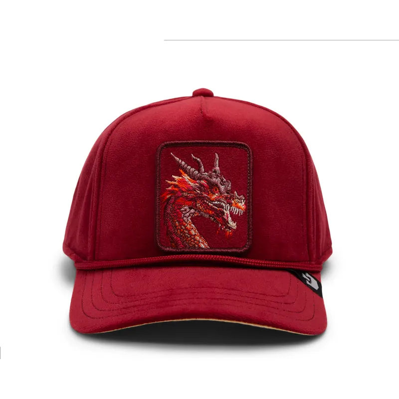 Rote Snapback-Kappe mit gebogenem Schirm Dragon Royalty The Farm von Goorin Bros.