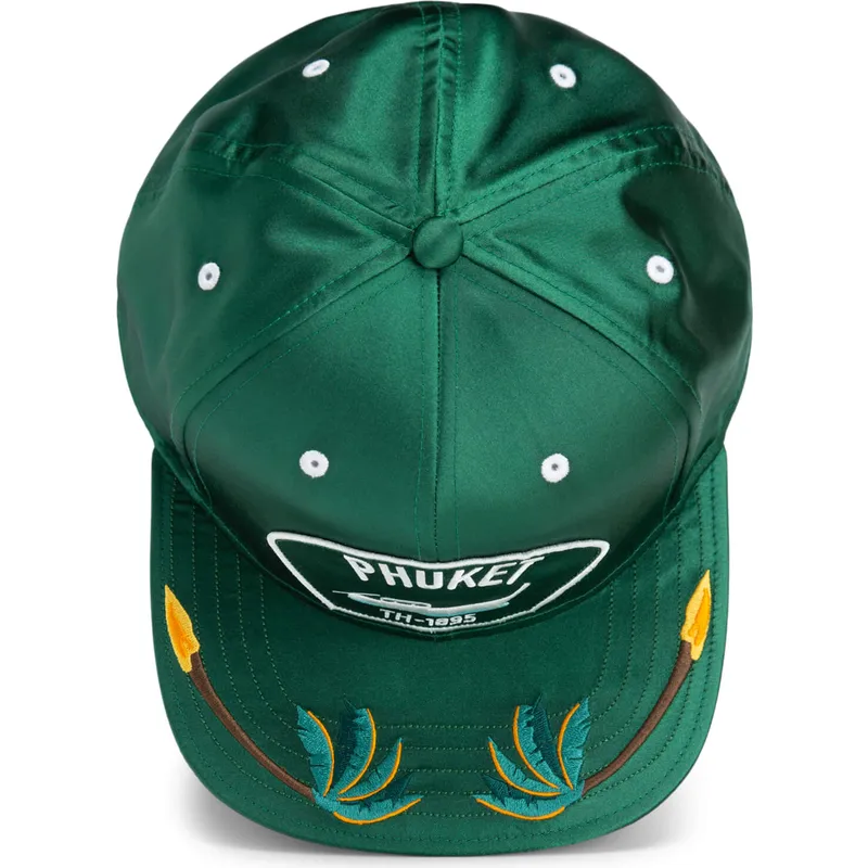 Die grüne Snapback-Kappe „Phuket Yolo Bucket List The Farm“ von Goorin Bros. ist ideal für alle, die ihrem Alltagslook einen Hauch von Stil und Persönlichkeit verleihen möchten. Seine leuchtend grüne Farbe und sein einzigartiges Design heben Sie von der Masse ab.