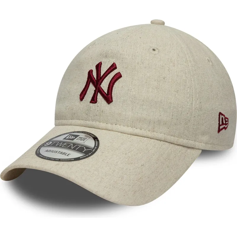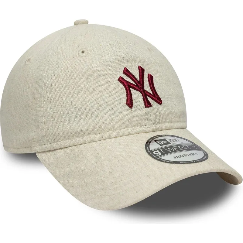 Verstellbare beige 9TWENTY Leinen Kappe mit gebogenem Schirm von New York Yankees MLB von New Era