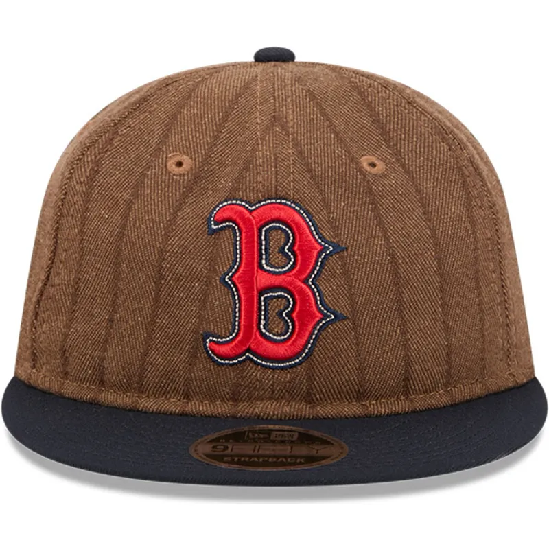 Boston Red Sox MLB 9FIFTY Retro Crown Wool Pinstripe verstellbare braun und marineblau Kappe von New Era