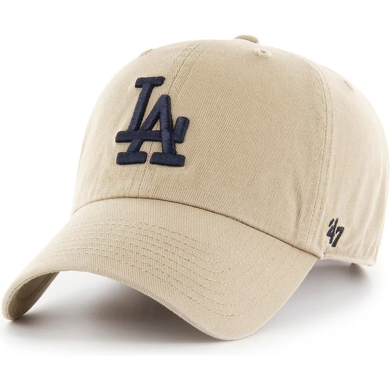 47 Brand MLB Los Angeles Dodgers Clean Up Kappe mit gebogenem Schirm in Khaki und schwarzem Logo
