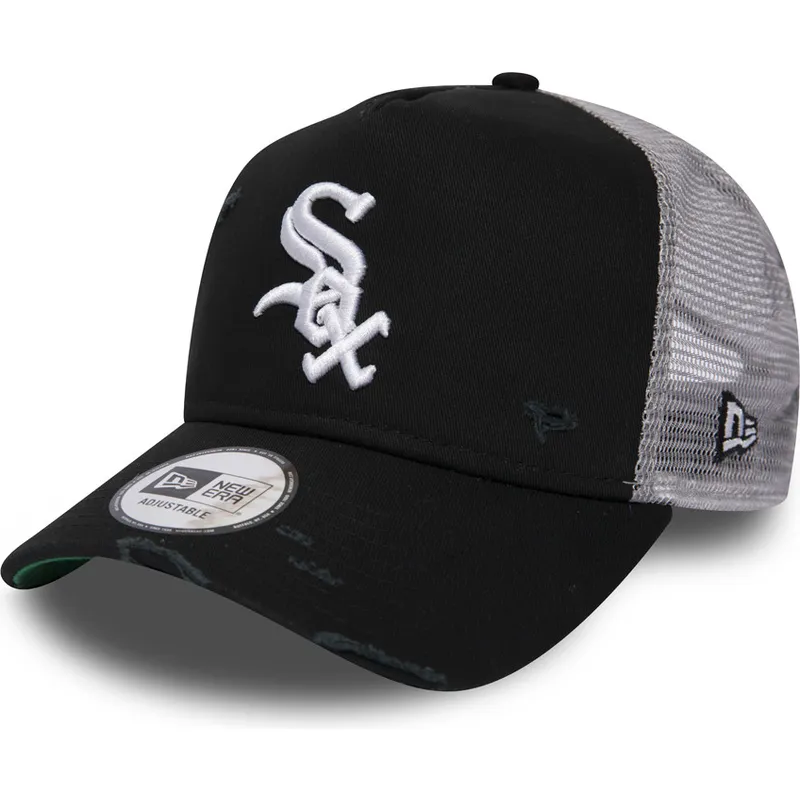 Schwarze Distressed A-Frame Trucker-Kappe Chicago White Sox MLB von New Era