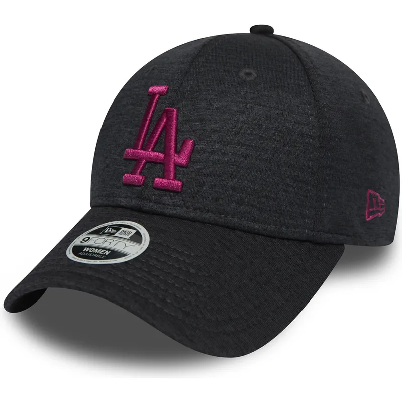 Verstellbare graue Kappe mit gebogenem Schirm und rosa Logo 9FORTY Essential Jersey der Los Angeles Dodgers MLB von New Era