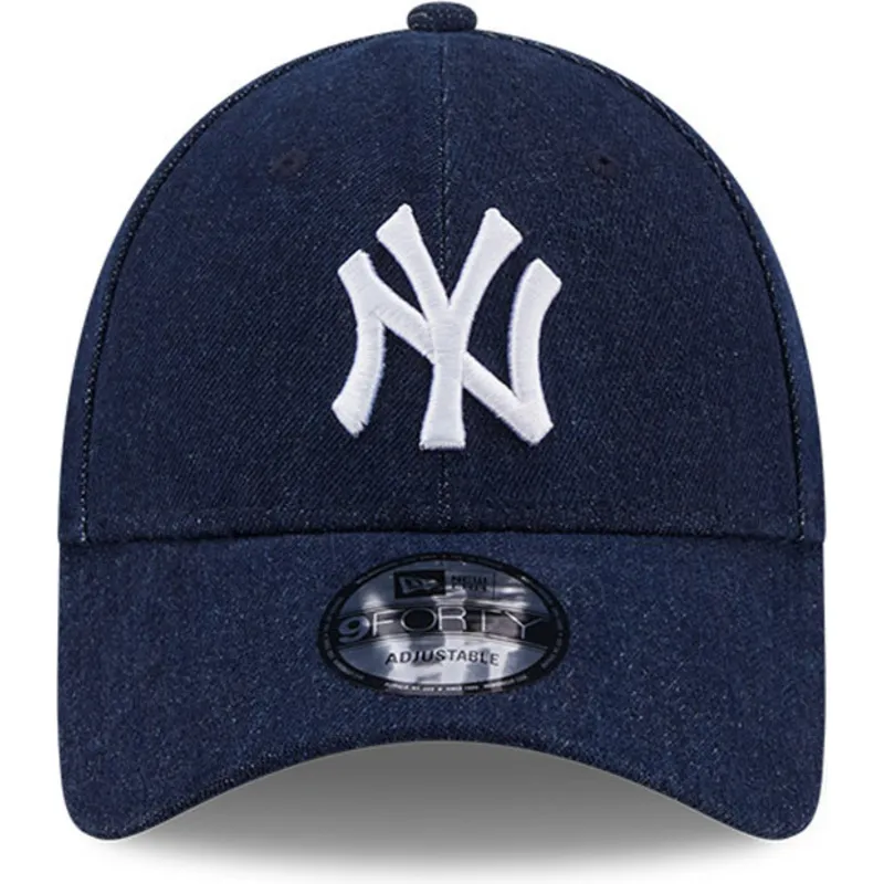 New Era 9FORTY verstellbare Kappe mit gebogenem Schirm in Dunkelblau Denim der New York Yankees MLB