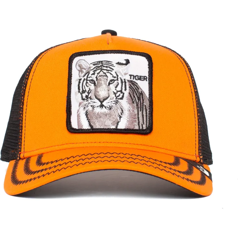 Orange und schwarze Trucker-Kappe Tiger The White Tiger The Farm von Goorin Bros.