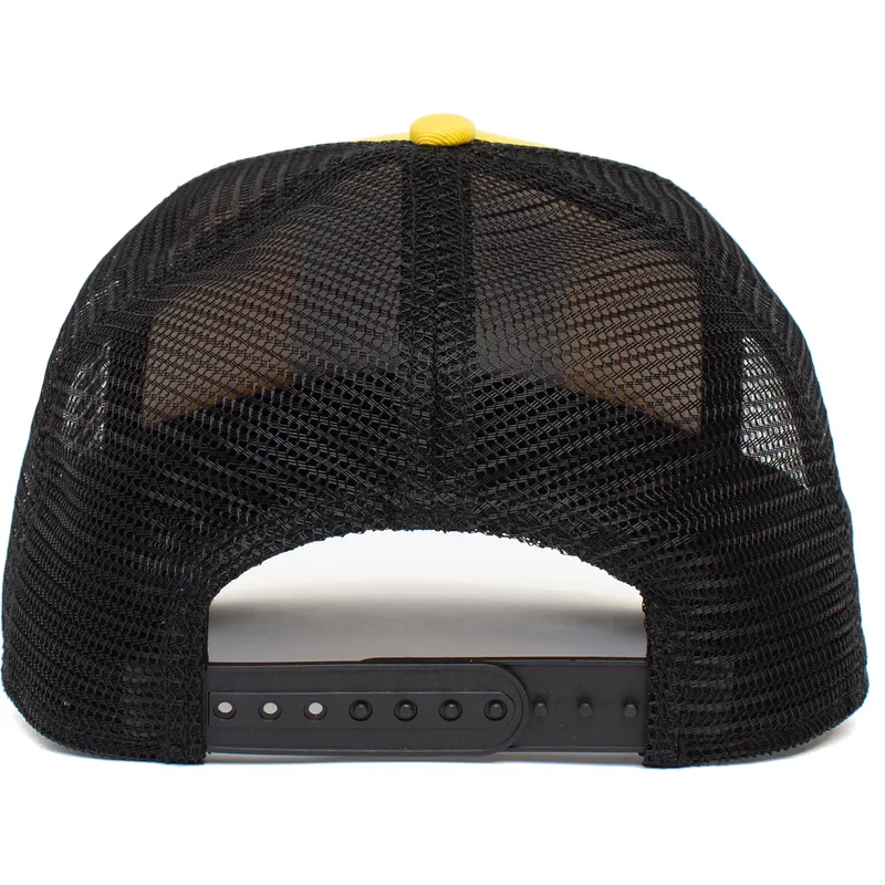 Gelbe und schwarze Trucker-Kappe Schaf The Black Sheep The Farm von Goorin Bros.