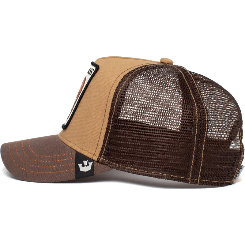 Die Goorin Bros. Donkey Brown The Ass The Farm Trucker Cap ist ein hochwertiges Stück, das Stil und Funktionalität vereint. Seine Trucker-Form ist einer der Favoriten für Cap-Liebhaber, da er dank seines hinteren Meshs eine bessere Belüftung bietet. Darüber hinaus ist seine braune Farbe ein vielseitiger Ton, der sich mit jedem Outfit kombinieren lässt.