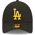 Schwarze, verstellbare Kappe mit gebogenem Schirm und gelbem Logo 9FORTY League Essential der Los Angeles Dodgers MLB von New Er