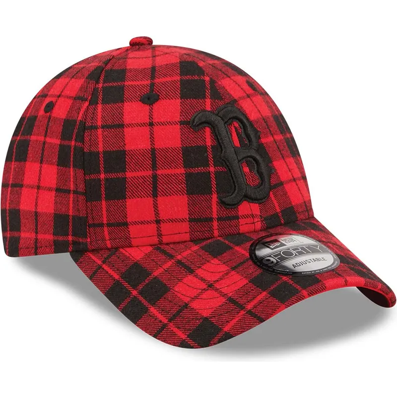 9FORTY Plaid Boston Red Sox MLB verstellbare rote Kappe mit schwarzem Logo von New Era
