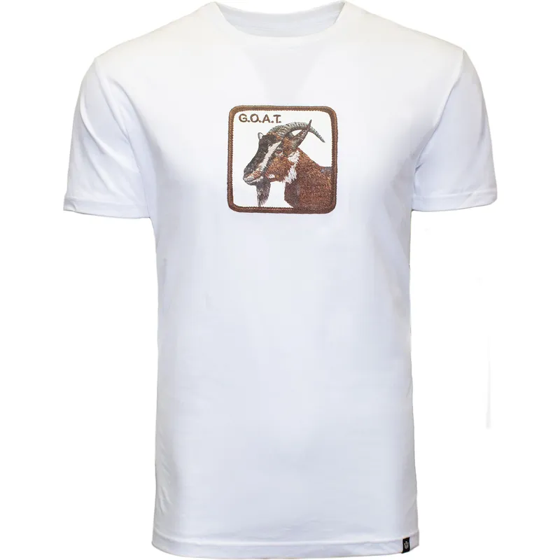 Weißes kurzärmliges T-Shirt Ziege G.O.A.T. Flat Hand The Farm von Goorin Bros.