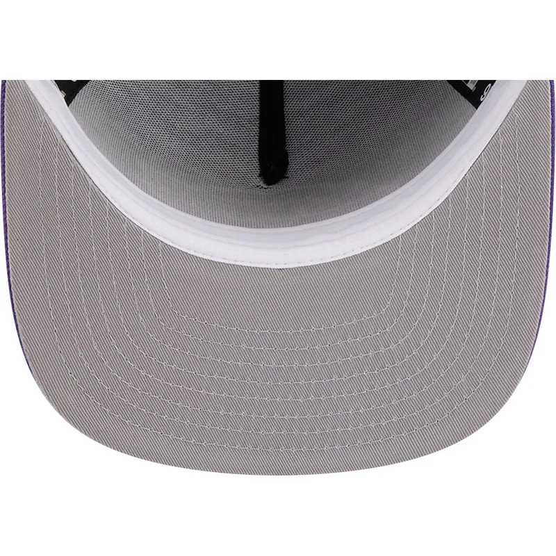 The New Era Los Angeles Lakers NBA 9FIFTY A Frame Hardwood Classics Purple Snapback Flat Cap is a must-have for basketball fans and followers of one of the NBA's most iconic teams. Designed by the renowned New Era brand, this cap combines style and functionality in an accessory that celebrates the history and greatness of the Los Angeles Lakers, a team that has left an indelible mark on the world of sports. With a flat, modern design, this cap stands out for its vibrant purple color, highlighting the team's dynamic identity and offering a bold look for any occasion.