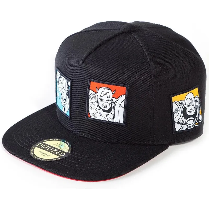 Casquette plate noire snapback Retro Avengers Marvel Comics Difuzed