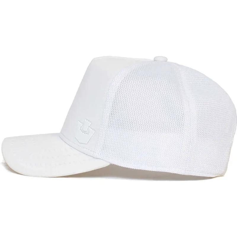 Il cappellino trucker bianco Gateway di Goorin Bros. è un accessorio irrinunciabile per ogni adulto alla ricerca di stile e comfort nel proprio look quotidiano. Con una chiusura snapback regolabile, questo berretto è perfetto per qualsiasi dimensione della testa e il suo design unisex lo rende ideale per qualsiasi genere.