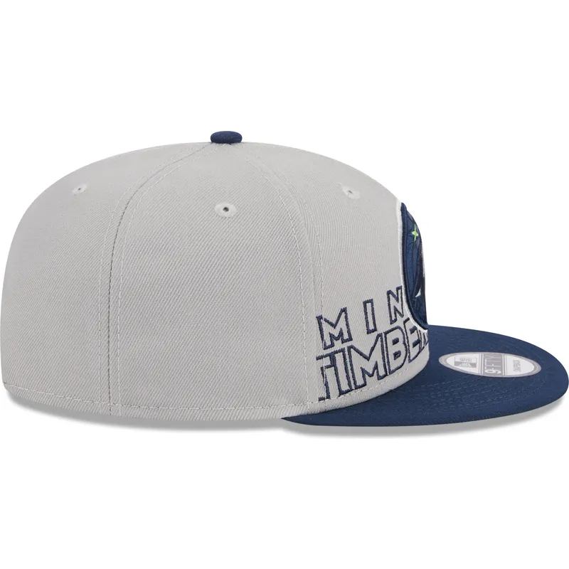 Cappellino piatto grigio e blu navy snapback 9FIFTY Draft Edition 2023 dei Minnesota Timberwolves NBA di New Era