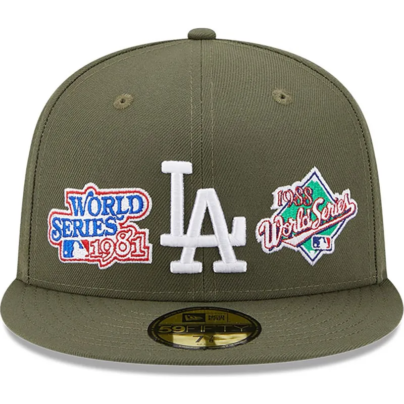 Berretto piatto verde aderente 59FIFTY World Series Los Angeles Dodgers MLB di New Era