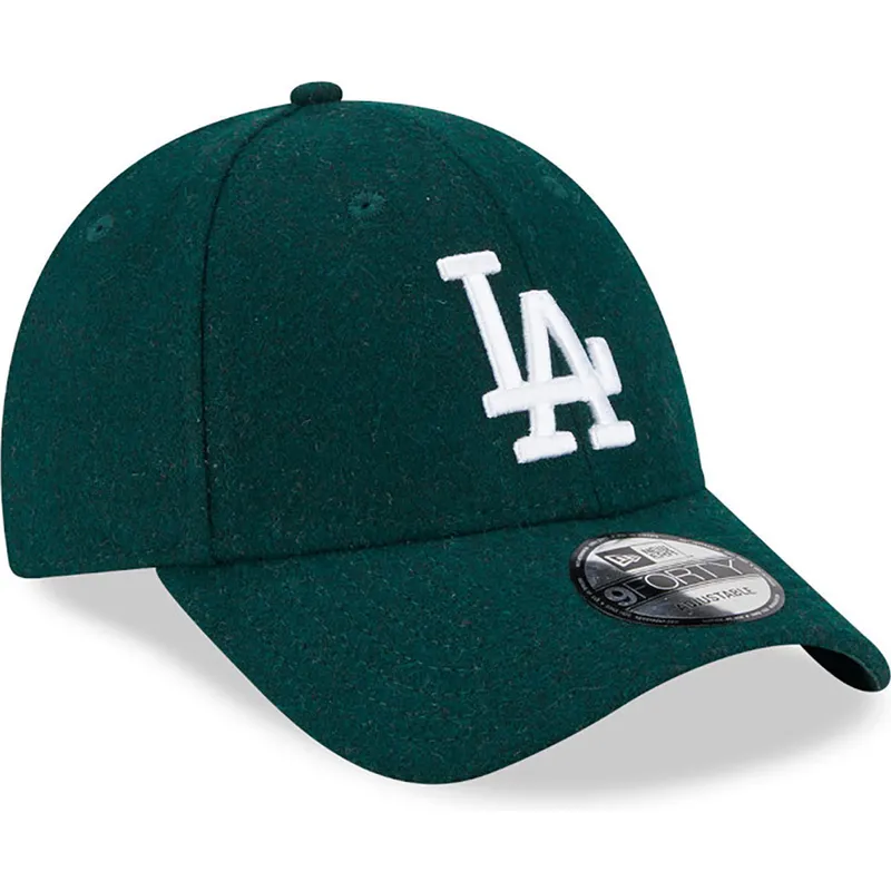 Cappellino verde curvo regolabile 9FORTY Essential Melton Wool dei Los Angeles Dodgers MLB di New Era