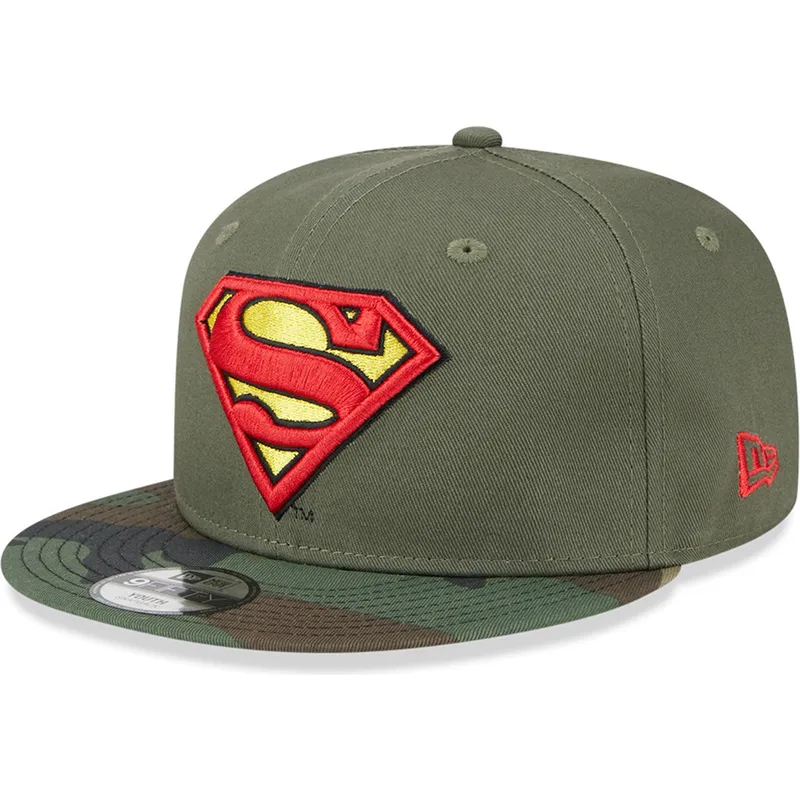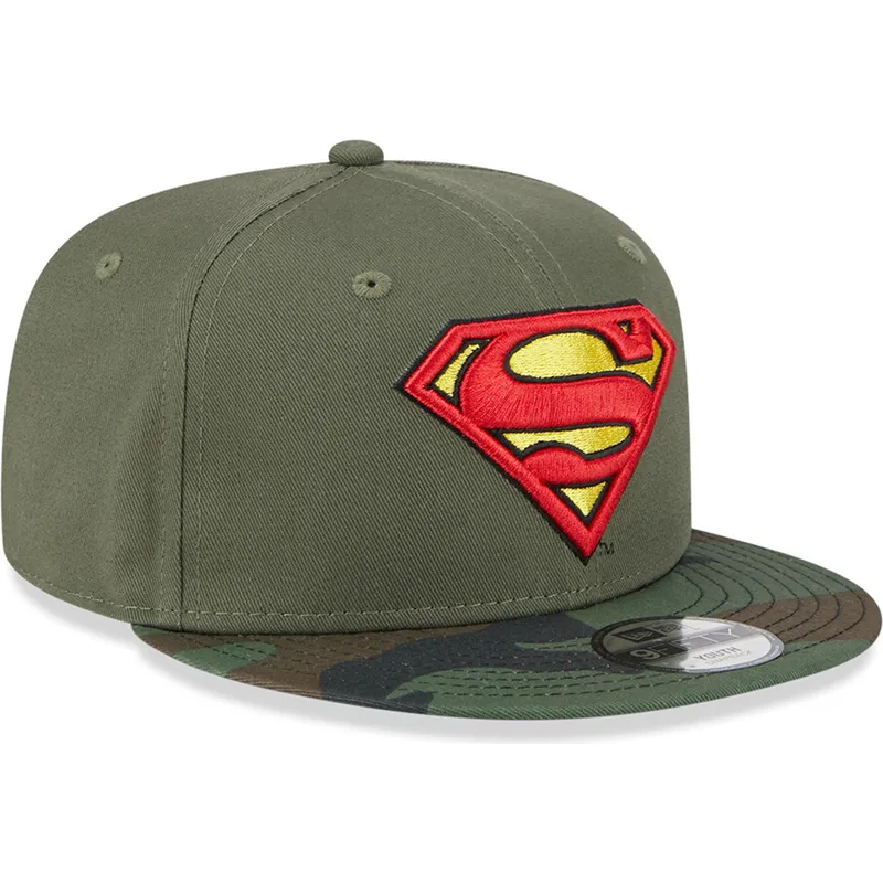 Cappello piatto verde e mimetico snapback per bambino 9FIFTY di Superman DC Comics di New Era