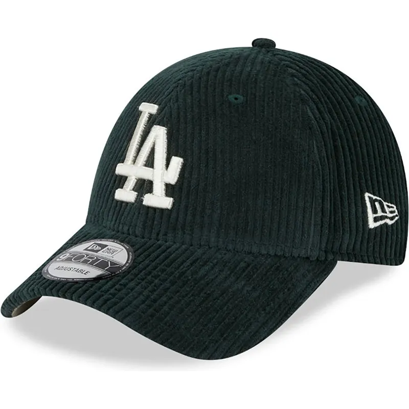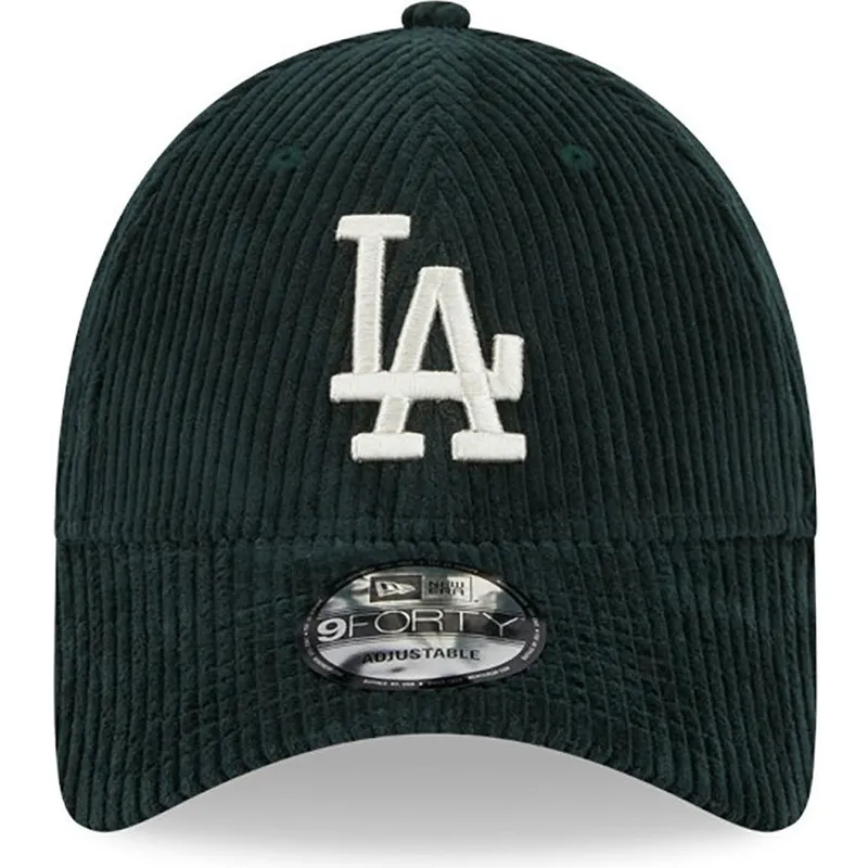 Cappellino verde con visiera curva regolabile con logo beige 9FORTY Wide Cord dei Los Angeles Dodgers MLB di New Era