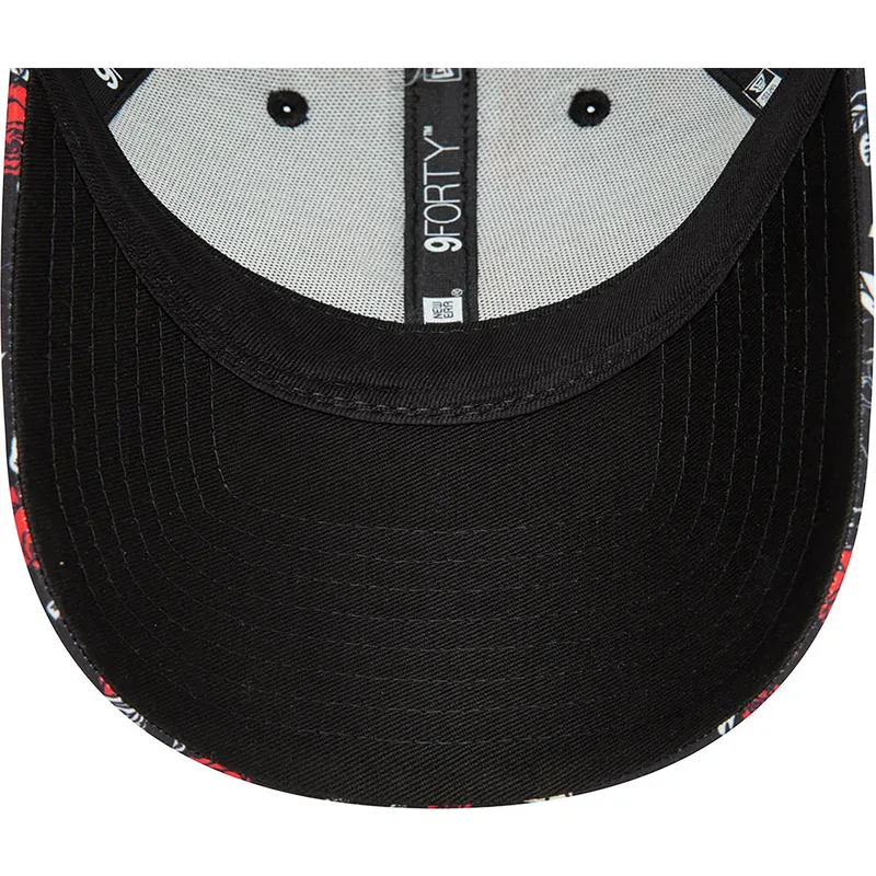 Cappellino curvo nero e rosso regolabile 9FORTY con stampa floreale integrale del Manchester United Football Club Premier League