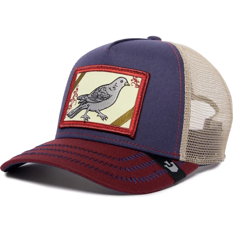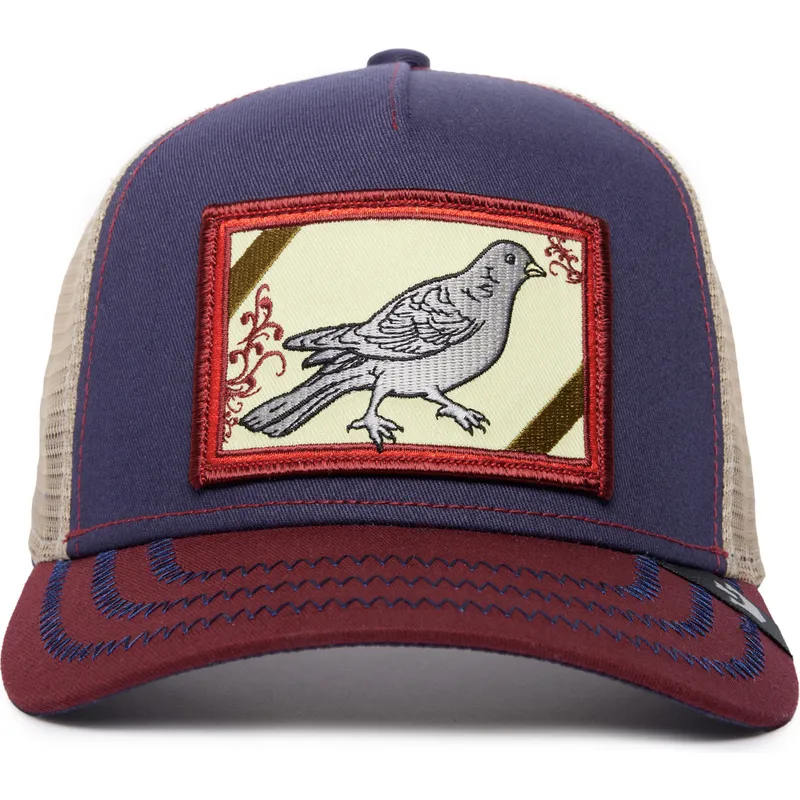 Il cappellino da camionista Ye Olde Birdie The Farm Retro Classic con uccello blu scuro, beige e rosso di Goorin Bros. è un must per gli amanti della moda e dello stile. Il suo design senza tempo e la qualità incomparabile lo rendono un pezzo essenziale in ogni collezione di cappelli. La chiusura snapback garantisce una vestibilità perfetta, mentre la sua forma trucker gli dona un look casual e cool.