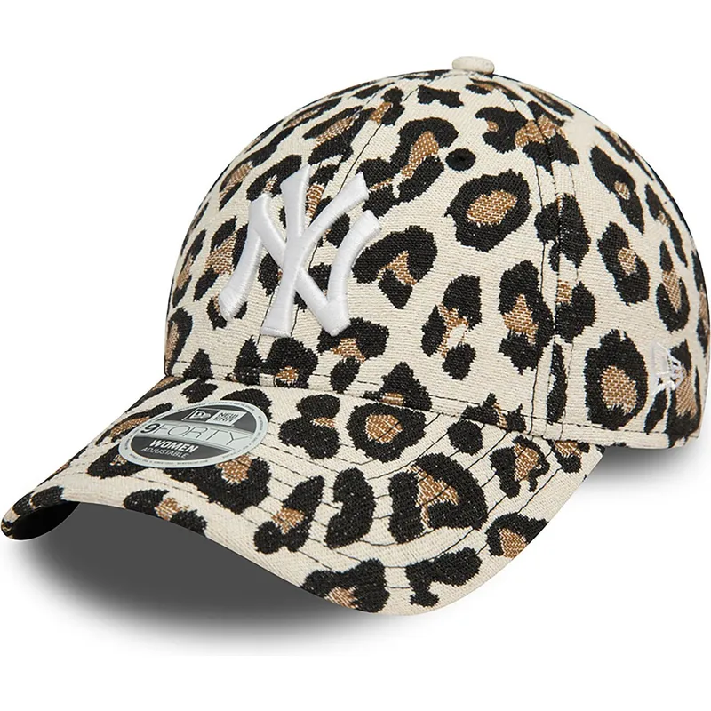 Cappellino curvo leopardo regolabile da donna 9FORTY New York Yankees MLB di New Era