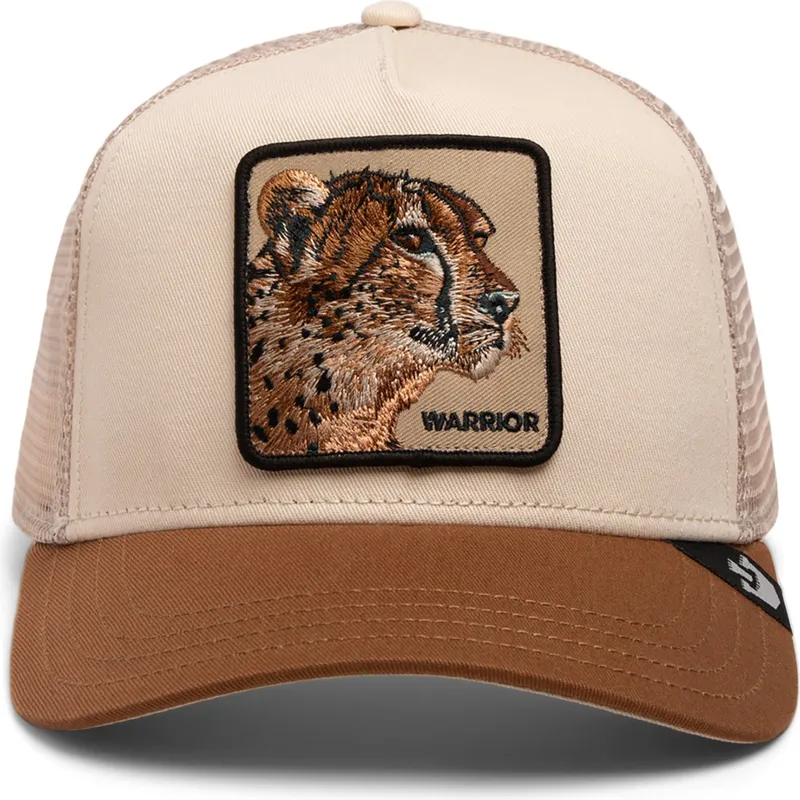 Gorra trucker beige e marrone ghepardo The Warrior Cheetah Big Cats The Farm di Goorin Bros.