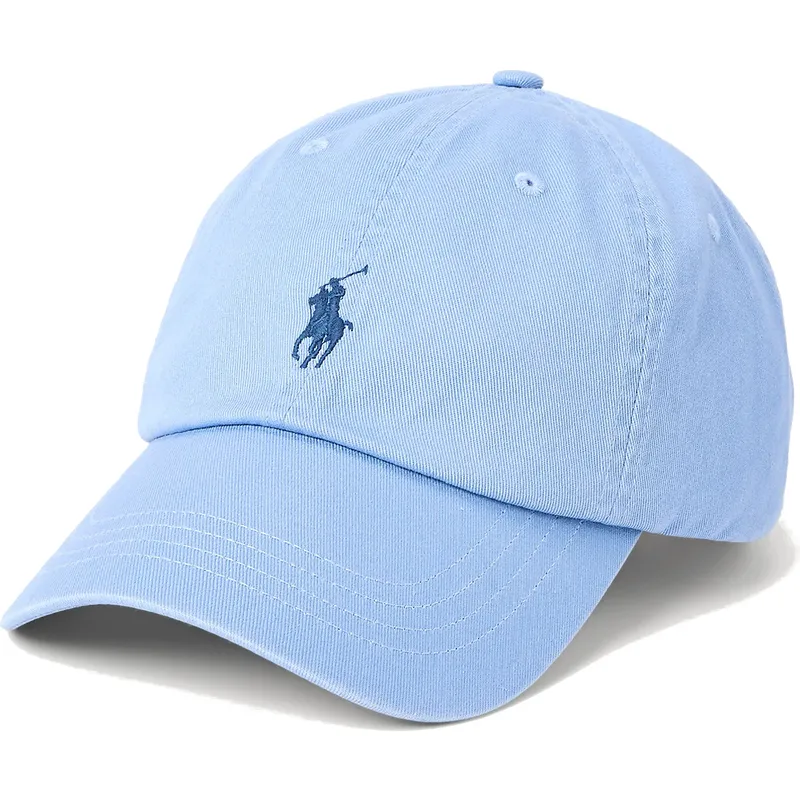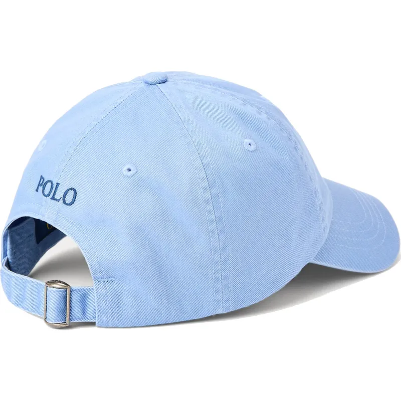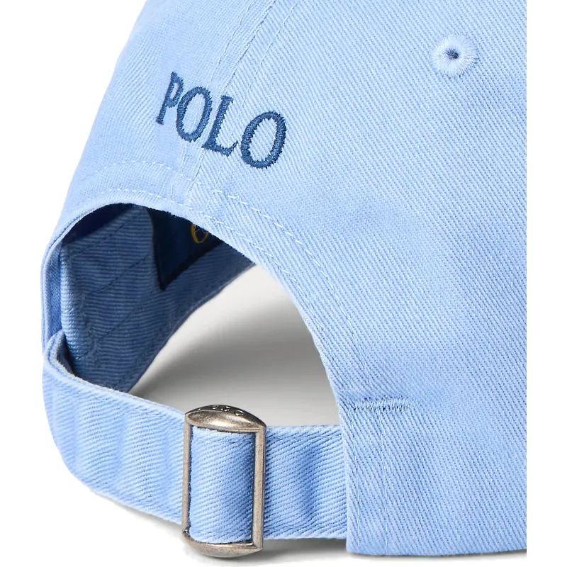 Cappellino curvo azzurro regolabile con logo blu in cotone chino Classic Sport di Polo Ralph Lauren