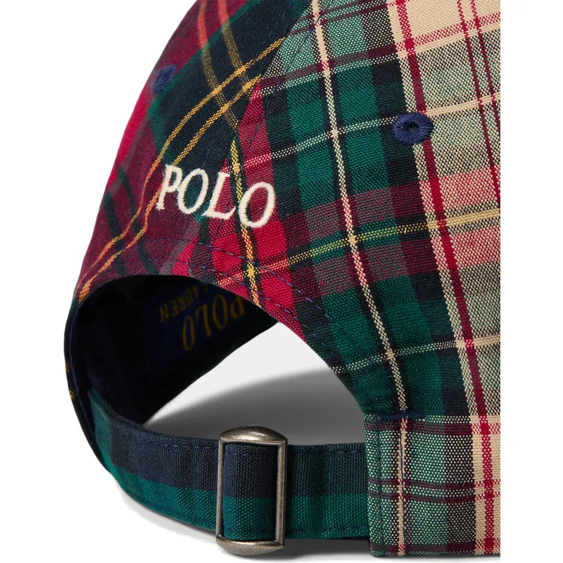 Cappello curvo multicolore regolabile con logo bianco Classic Sport Plaid di Polo Ralph Lauren