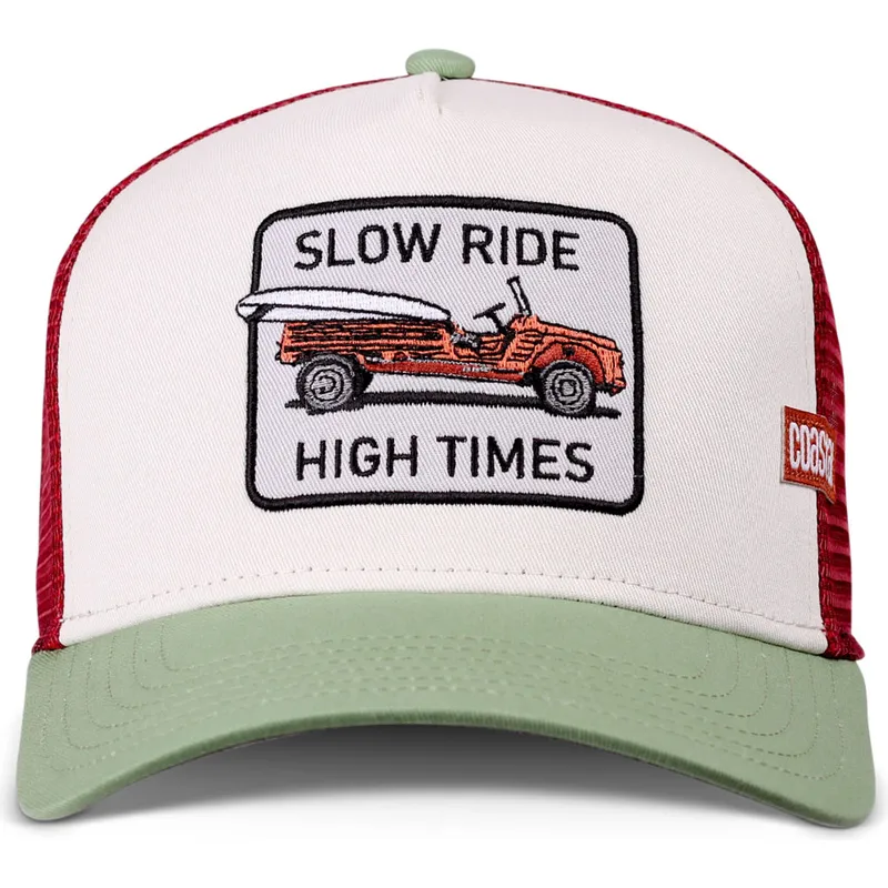 Il cappellino da camionista Slow Ride High Times HFT beige, rosso e verde di Coastal è sicuramente un must per ogni amante della moda urbana. Realizzato con materiali di alta qualità, questo berretto garantisce durevolezza e resistenza, così potrai indossarlo in qualsiasi occasione senza preoccuparti del suo stato. Il suo design unisex lo rende perfetto per chi cerca un accessorio versatile ed elegante.