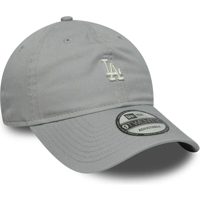 Cappellino grigio curvo regolabile 9TWENTY Mini Logo Washed dei Los Angeles Dodgers MLB di New Era