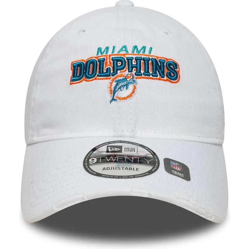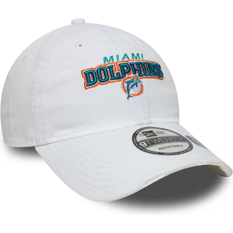 Cappellino bianco curvo regolabile 9TWENTY Washed Distress dei Miami Dolphins NFL di New Era