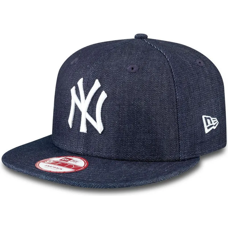 Cappellino piatto blu navy snapback 9FIFTY Essential Denim dei New York Yankees MLB di New Era