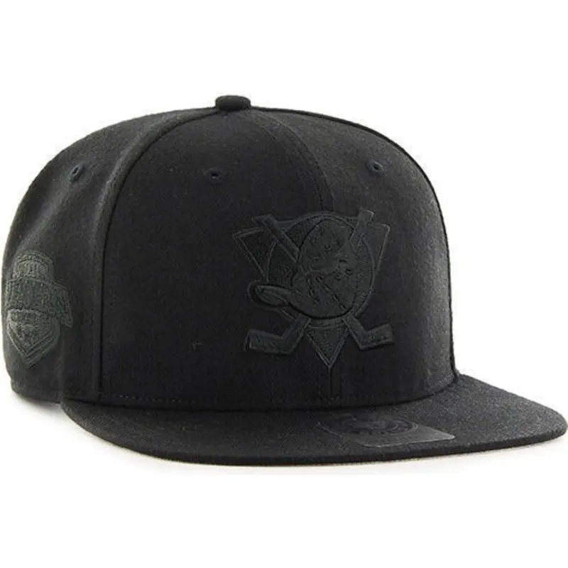 Cappello snapback nero con visiera piatta e logo nero Anaheim Ducks NHL Captain di 47 Brand